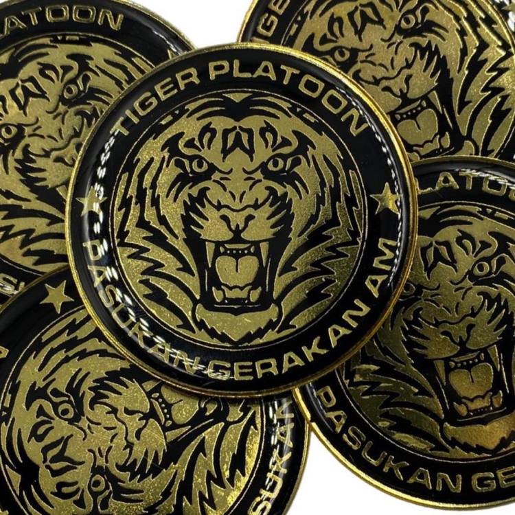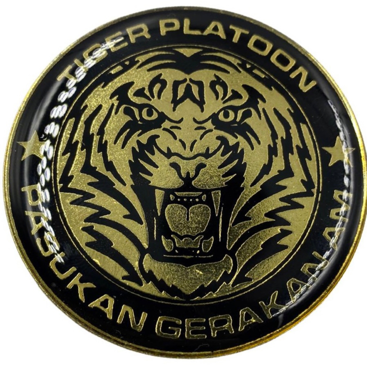 Tiger Platoon - Pasukan Gerakan Am | Material: Zinc Alloy | Epoxy Coating | 50mm Diameter | Fastener: Safety Pin