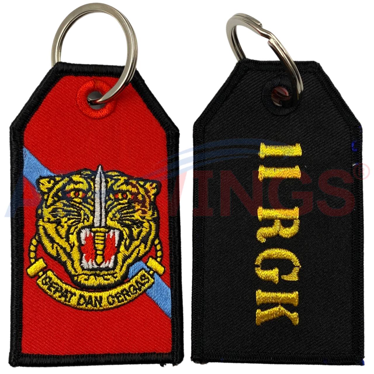 11 REJIMEN GERAK KHAS | Embroidered Key Tag | 50mm x 90mm | Front: 11 RGK Tiger Logo | Back: 11 RGK Wording | With 30mm Diameter Stainless Steel Key Ring
