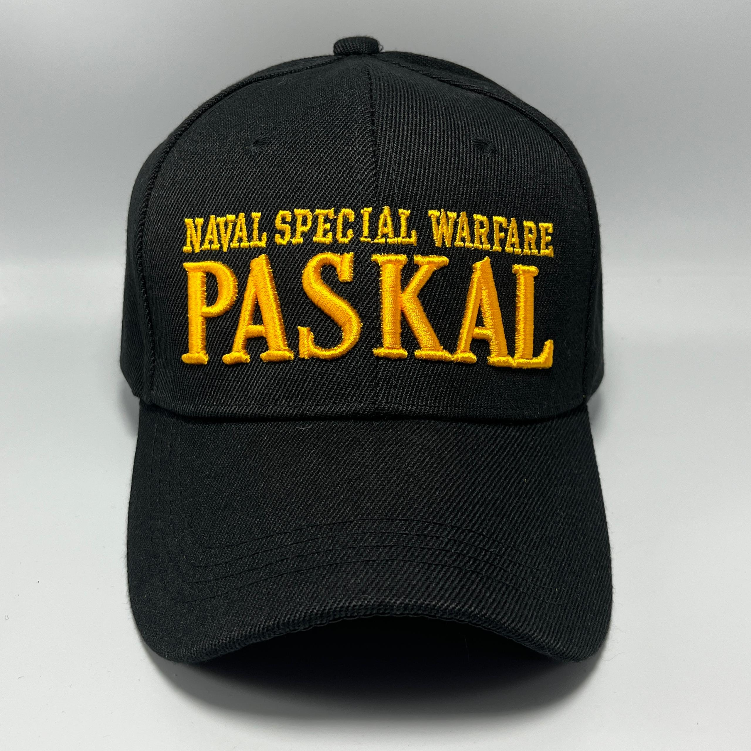 NAVAL SPECIAL WARFARE PASKAL | Cap Type: Baseball | Cap Color: Black | Cap Material: Cotton Twill | Embroidery on Front Panel: NAVAL SPECIAL WARFARE PASKAL 3D | Embroidery on Back Curve: PASKAL Logo | Cap Adjuster: Velcro