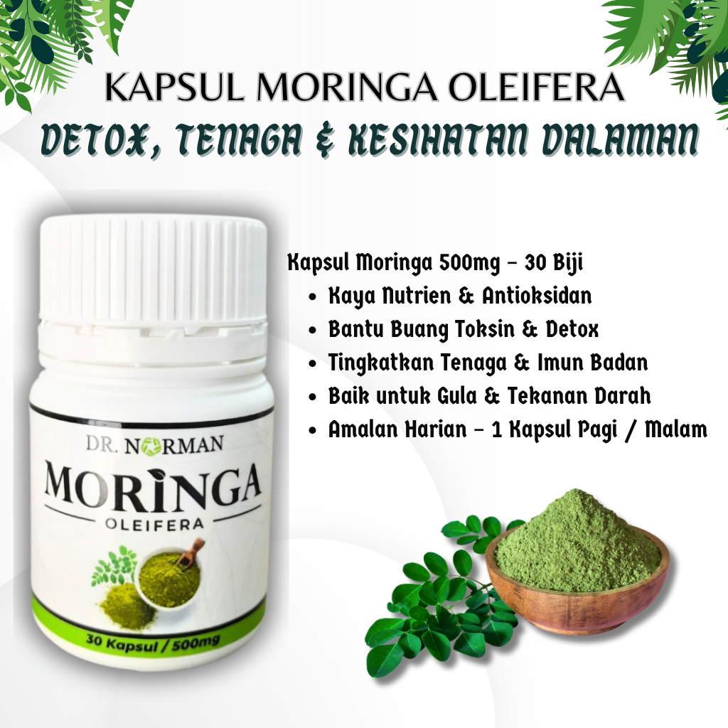 KAPSUL MORINGA OLEIFERA DR NORMAN 500MG – DAUN KELOR ASLI, DETOX, TENAGA & KESIHATAN DALAMAN