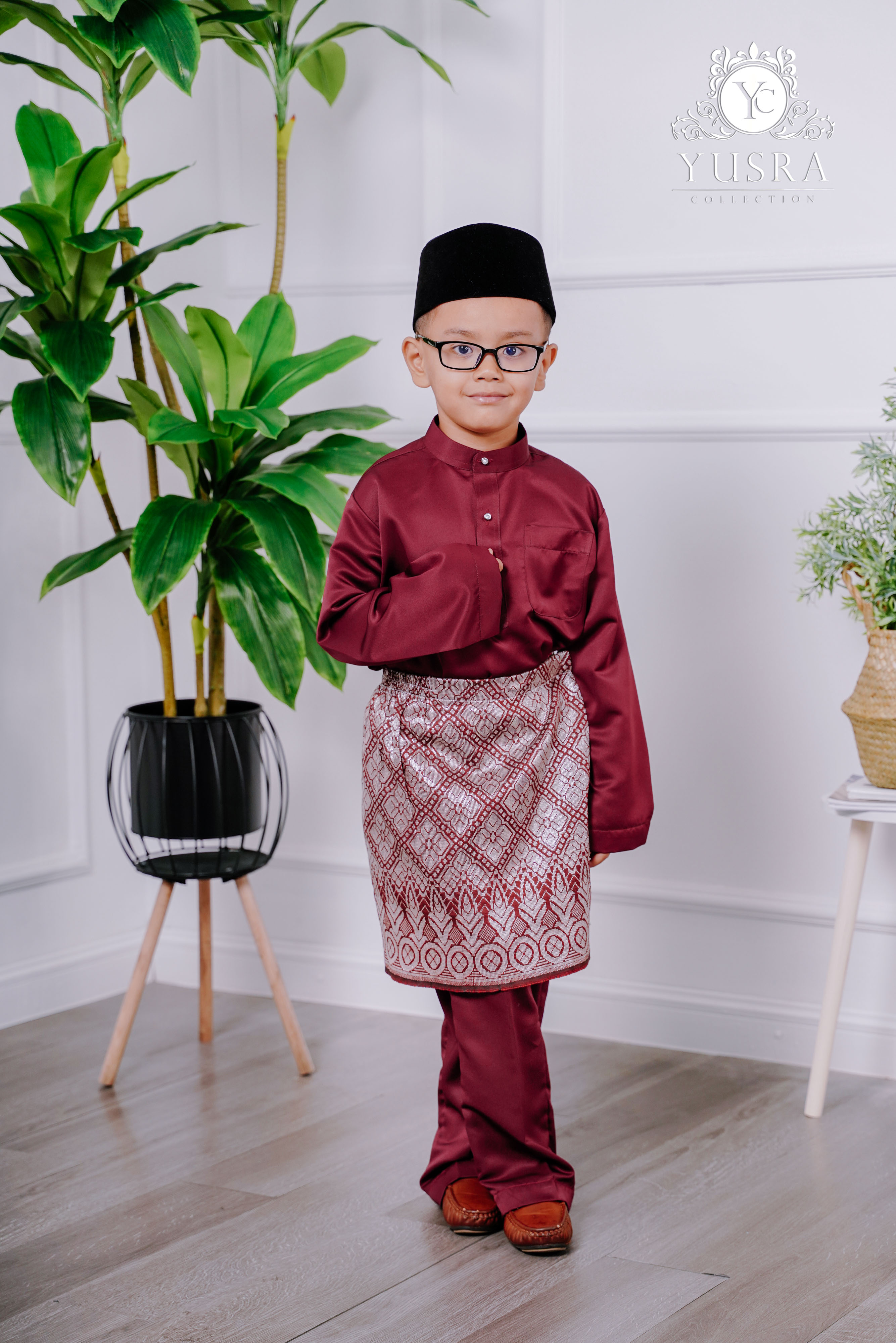 C1H)BAJU MELAYU MAROON SAIZ 24 CEKAK MUSANG (BERPESAK) (BUTIK)